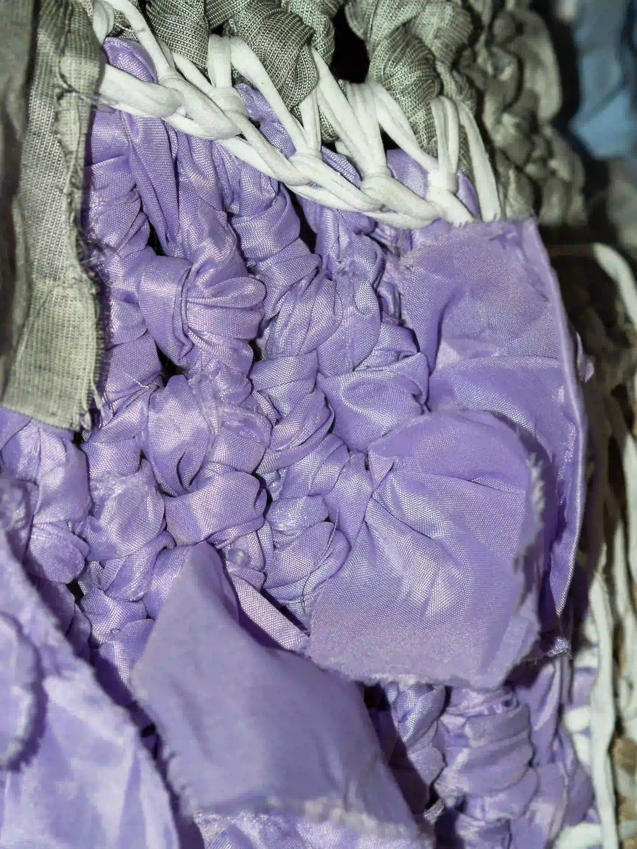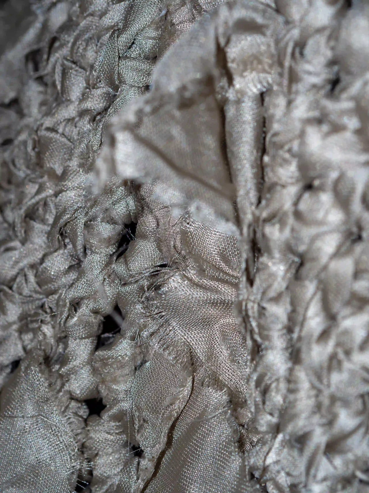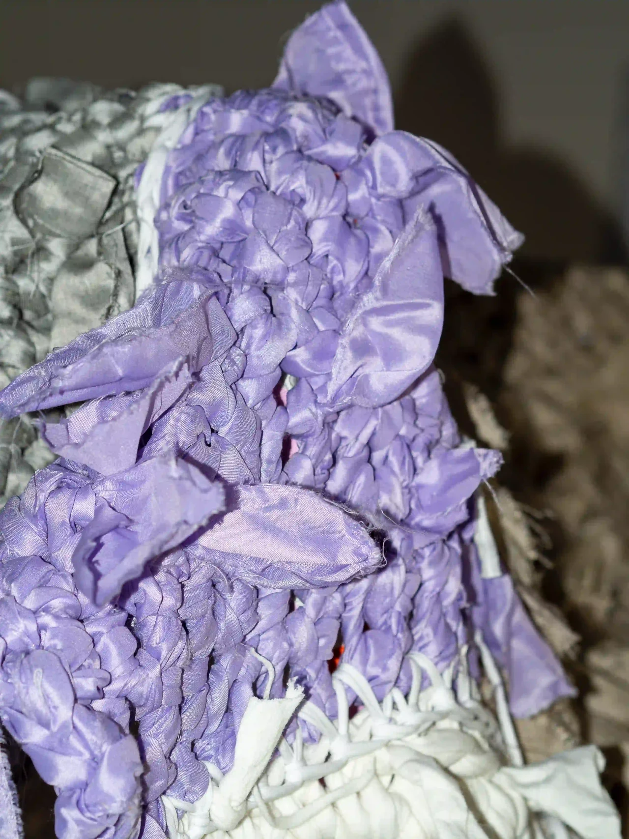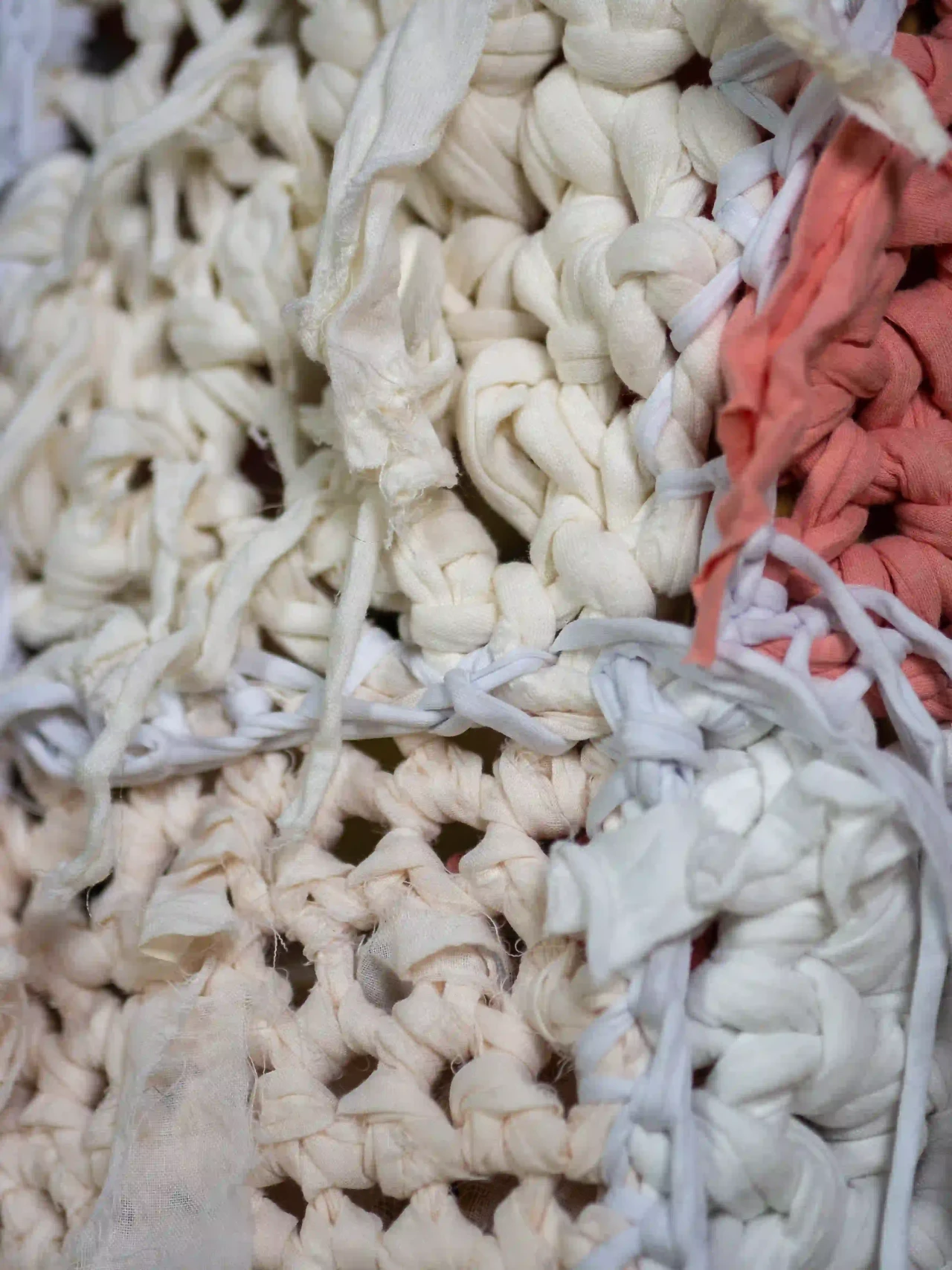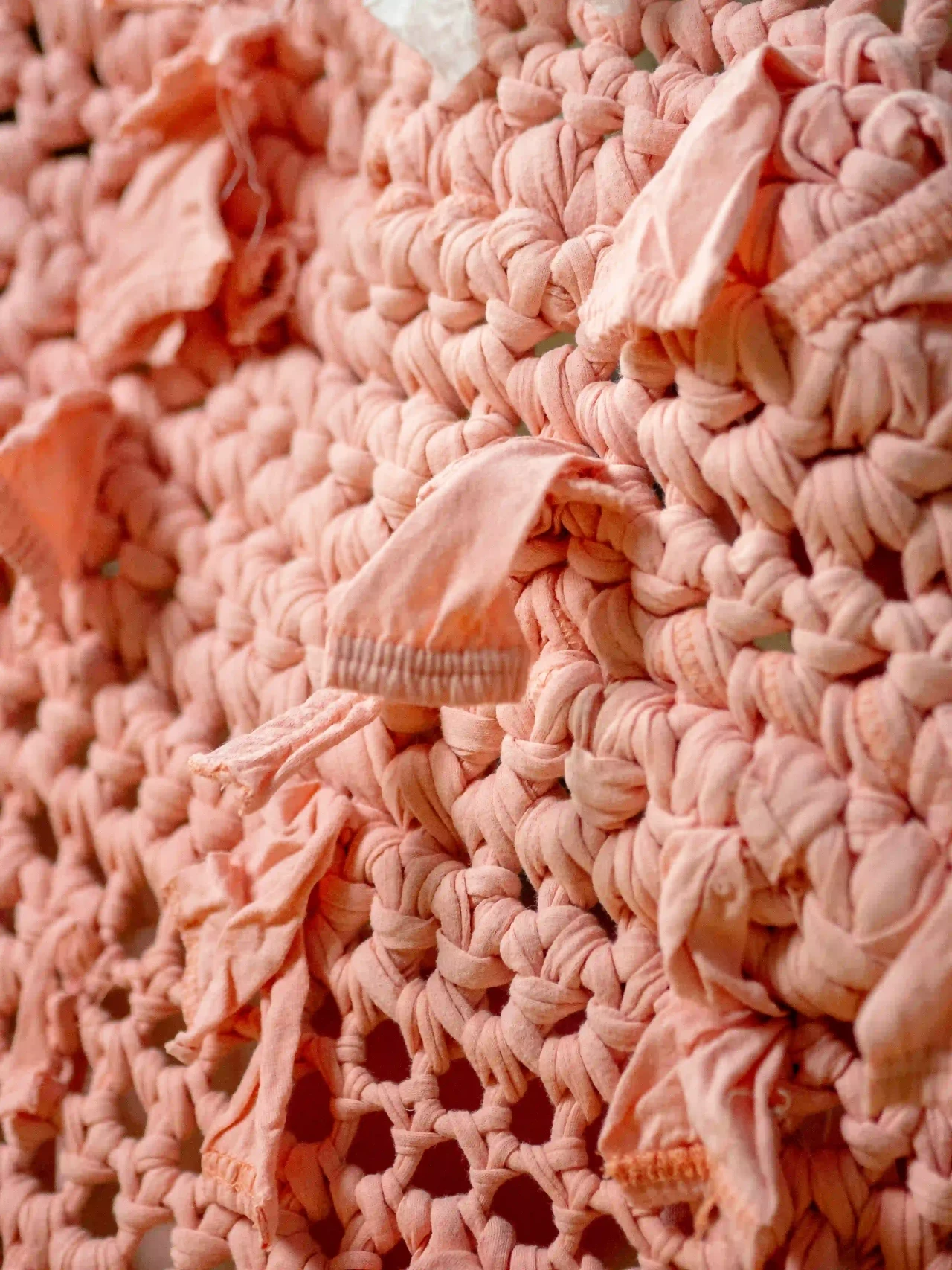 ►Kannst du uns dein Projekt beschreiben? Meine Arbeit umfasst ein Projekt ‹Textile Flächen in Größe› aus einem Textildesignkurs in dem der Fokus auf Größe und Plastizität liegen sollte. Meine Idee war es, Häkeltechniken mit nachhaltigen Materialien zu verknüpfen. ►Möchtest du eine besondere Botschaft oder Bedeutung durch deine Arbeit vermitteln? Das Thema ‹Nachhaltiges Design› ist so aktuell wie nie. So ist es mir wichtig mit meiner Arbeit darauf aufmerksam zu machen, dass Design und Nachhaltigkeit miteinander harmonieren können und gerade textiles Design hier sehr bedeutend sein kann. ►Mit welchen Techniken hast du gearbeitet? Da ich nachhaltige Materialien nutzen wollte, habe ich mich für Upcycling entschieden. Dazu habe ich über die Zeit ‹alltägliche Textilien› gesammelt, wie zum Beispiel Bettlaken, Stoffe, Vorhänge. Im nächsten Schritt habe ich diese Stoffe dann zu unterschiedlich dicken und breiten Streifen zerrissen und miteinander verhäkelt. Um den unterschiedlichen Größen und Breiten der Textilmengen gerecht zu werden, habe ich hier verschieden Häkelnadeln genutzt, die sich in der Stärke unterschieden haben. ►Kannst du uns von deinem Gestaltungsprozess erzählen? Beim Verarbeiten der gesammelten Textilien fand ich es gerade spannend, dass jede Materialität doch eine andere Struktur beim Verarbeiten aufweist. Als ich dann alle verschiedenen Flächen nebeneinandergelegt habe, um sie anschließend miteinander zu verknüpfen, war es besonders schön für mich zu sehen, wie die Gestaltung unterschiedliche Tiefen und Strukturen miteinander zu einer großen Fläche verbunden hat und doch jede einzelne Fläche für sich spricht. ►Was war die größte Herausforderung für dich? Bei der Hälfte der Menge nicht schon beim Verhäkeln aufzugeben. Es waren sehr viele Textilien, die ich gebraucht habe, um auf die angeforderte Fläche zu kommen. Außerdem hat es sehr viel Handkraft gebraucht, um das dicke Textil zu verarbeiten. ►Hast du ein Skizzenbuch? Ja, meistens schon. An dieses Projekt bin ich aber eher frei herangegangen und habe mir die Inspiration von anderen Flächen und Objektdesigns geholt, die ich gestalte. Ansonsten arbeite ich auch sehr gerne mit Moodboards und Collagen. ►Wo findest du Inspiration für deine Arbeiten? Neben Collagen und Moodboards finde ich meine Inspiration in anderen Flächen und Objektdesigns von mir. Ich bin nebenbei freie Künstlerin und wie es auch bei meiner Objekt und Leinwandkunst ist, gehe ich sehr gerne in die Tiefen, arbeite mit Strukturen und Plastizität und gestalte im ‹organischen Stil›. Wie auch bei diesem Textilprojekt. Mich fasziniert es, mit Materialien zu experimentieren und sie anschließen zu etwas Neuem zu gestalten oder rekonstruieren. Dabei besteht Textildesign nicht nur aus dem Design einer textilen Fläche. Es ist vielmehr eine Komposition, von Design und Textil in Objekt und Fläche und kann dabei in alle Arten und Dimensionen gehen. Design mit nachhaltigem Bewusstsein kann gerade bei Textildesign integriert werden. Das war mir bei meiner Arbeit hier besonders wichtig.