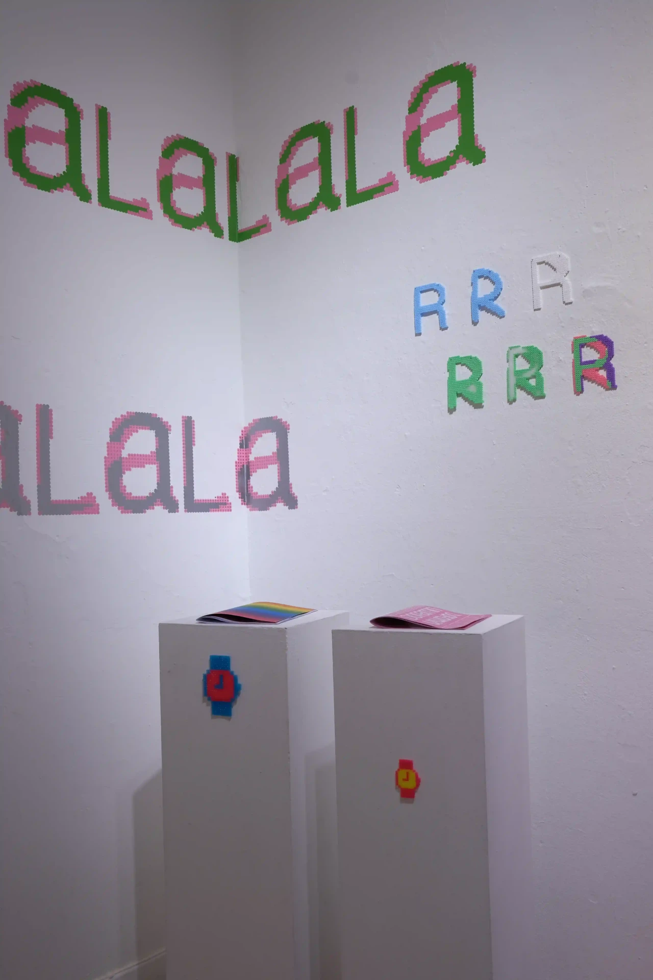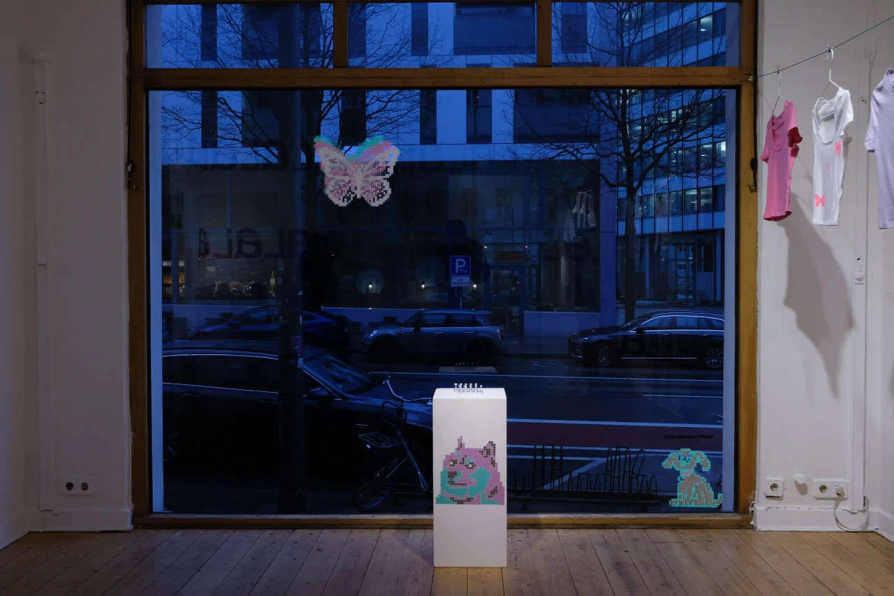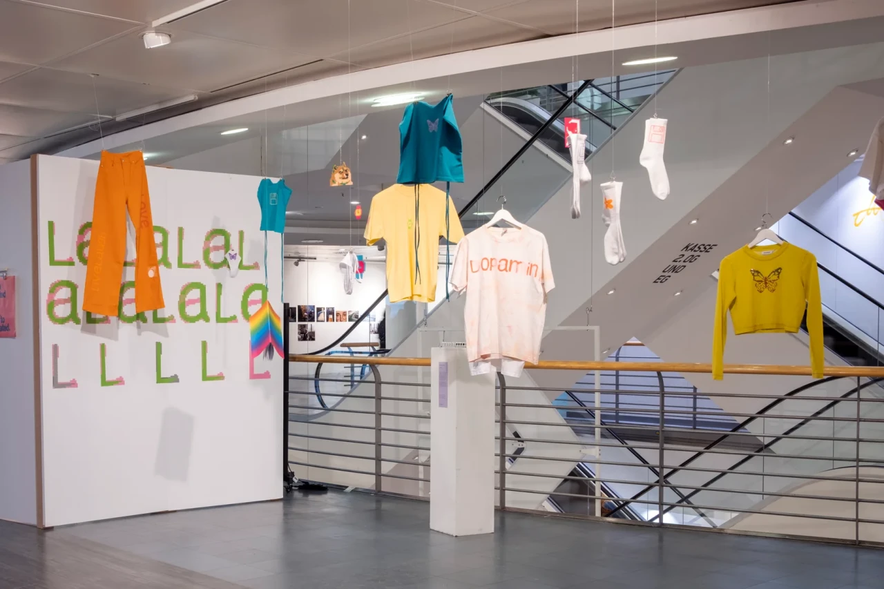 ►Kannst du dich und dein Projekt kurz vorstellen? Meine Bachelorarbeit ‹Dopamin› setzt sich mit der Frage auseinander, inwiefern die Digitalisierung und andere Einflüsse der Jahrtausendwende die Gestaltung [alltäglich und professionell] geprägt haben. Die Schrift Comic Sans als Ikone dieser Zeit bietet dabei den Ausgangspunkt der Visualisierung, die in der neu gestalteten Schrift ‹Dopamin› resultiert. ►Schüttet die Comic Sans bei dir Glücksgefühle, also Dopamin, aus? Jein. In bestimmten Anwendungen löst die Comic Sans für mich Glücksgefühle aus und es macht mich definitiv glücklich, regelmäßig Fotos von lieben Menschen geschickt zu bekommen, die der Schrift über den Weg laufen und dadurch in ihrem Alltag ab und an innehalten und an mich denken [Für diese Bilder gibt es einen eigenen Instagram-Account: @comicfans95]. Viel mehr als ein Glücksgefühl zu verursachen, wirft die Schrift jedoch durch ihre kontroverse Verhandlung unter mehr- oder-weniger-Schriftkenner*innen für mich persönlich Fragen auf, denen auf den Grund zu gehen mir große Freude bereitet. Denn jeder Wissenszuwachs macht Spaß. Außerdem hat es in mir große Glücksgefühle ausgelöst, eine eigene Schrift zu gestalten. An so ein Projekt habe ich mich mit meiner Bachelorarbeit zum ersten Mal wirklich getraut [und bin immer noch dabei es fertig zu stellen]. Ich merke, dass ich Schriftgestaltung [schon seit ich als Schulkind in meine Hefte gekritzelt habe] sehr liebe. ►Mit welchen Tools hast du gearbeitet? Was macht diese Tools für dich interessant? Da das Endprodukt eine Schrift ist, war mein Haupttool im Endeffekt natürlich das Schriftgestaltungsprogramm Glyphs. Auf der Formrecherche und in der Materialisierung – letztlich ist eine Schrift ja auch ‹nur› ein Tool – habe ich aber auch viel mit analogen Tools wie Bügelperlen, Strasssteinen, Stickerei, Siebdruck et cetera gearbeitet, die im Zusammenspiel mit Illustrator und Vectoraster zur resultierenden Form geführt haben. ►Was hat dich inspiriert? Zu der ursprünglichen Auseinandersetzung hat mich die Präsenz der Comic Sans im Alltag geführt – viel durch Aushänge, die mir beim Spazierengehen begegnet sind. Von da aus habe ich mich in Formen und Farben viel von meinen Glückshormonen steuern lassen. Um nicht unglücklich im BA-Sumpf zu versinken, war die oberste Prämisse für alles, was ich getan habe, dass es mir Spaß bereitet. Außerdem entsteht viel Inspiration durch die Wechselwirkung von analoger und digitaler Praxis. Im Endeffekt würde ich aber sagen: Alles, was wir sehen oder wahrnehmen, kann uns als Gestalter*innen inspirieren und tut dies unterbewusst wahrscheinlich öfter, als wir denken. ►Vor welche Herausforderungen hat dich das Projekt gestellt? Vor allem war bei diesem Projekt besonders und anders als bei anderen Gestaltungsprojekten wie Plakaten, Büchern oder Websites, dass ich am Ende kein fertiges Produkt hatte, das präsentiert werden konnte. Das fertige Produkt war in meinem Fall ein Tool, das dann wiederum Anwendung in anderen Medien erfordert hat, um es zu materialisieren und präsentierbar zu machen. ►Was fühlst du, wenn du auf dein Projekt schaust? Momentan einerseits immer noch Freude – trotz der langen und intensiven Auseinandersetzung mag ich es immer noch sehr. Andererseits auch ein schlechtes Gewissen. Da es sehr aufwendig ist und ich immer nur in meiner Freizeit weiter daran arbeiten kann, arbeite ich heute noch an der Fertigstellung. Mein Plan ist aber, in diesem Jahr noch eine erste Open-Source-Version zu veröffentlichen und ich freue mich schon zu sehen, was mit ihr in den Händen anderer Gestalter*innen passiert. ►Was hast du über dich an der Arbeit an deinem Projekt gelernt? Vor allem habe ich gelernt, dass es guttut, der eigenen Intuition zu folgen, es mir gleichzeitig aber wahnsinnig hilft, mich viel mit meinem Umfeld über Ideen und Gedanken auszutauschen. Und, dass es keine objektiv ‹gute› und ‹schlechte› Gestaltung gibt. Auch aus alltäglicher Gestaltung lassen sich Inspiration und Freude ziehen!
