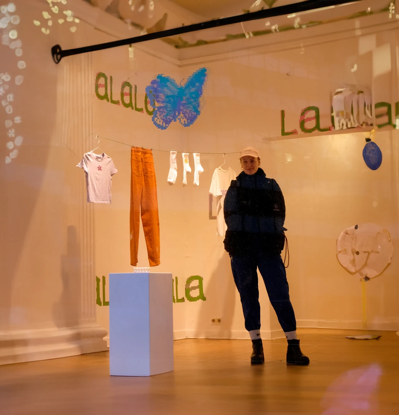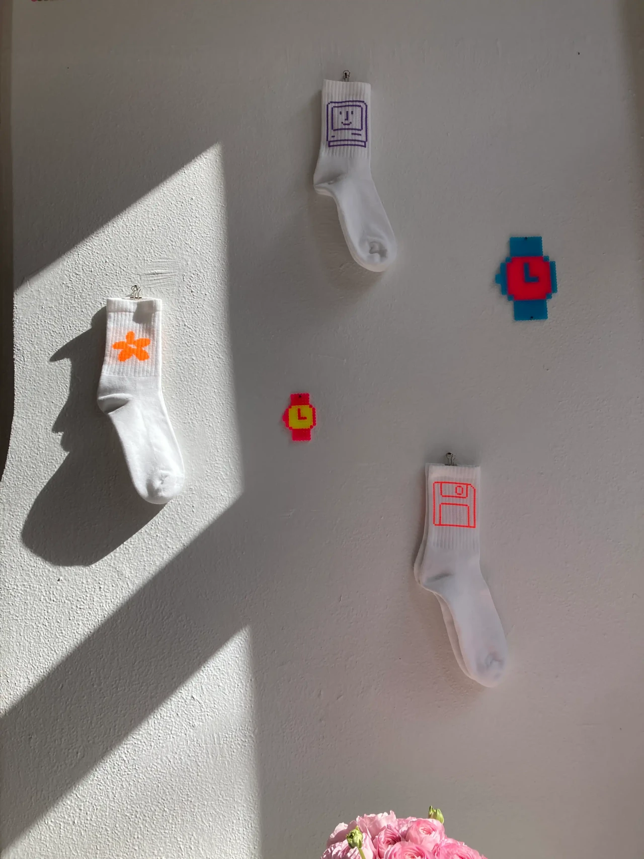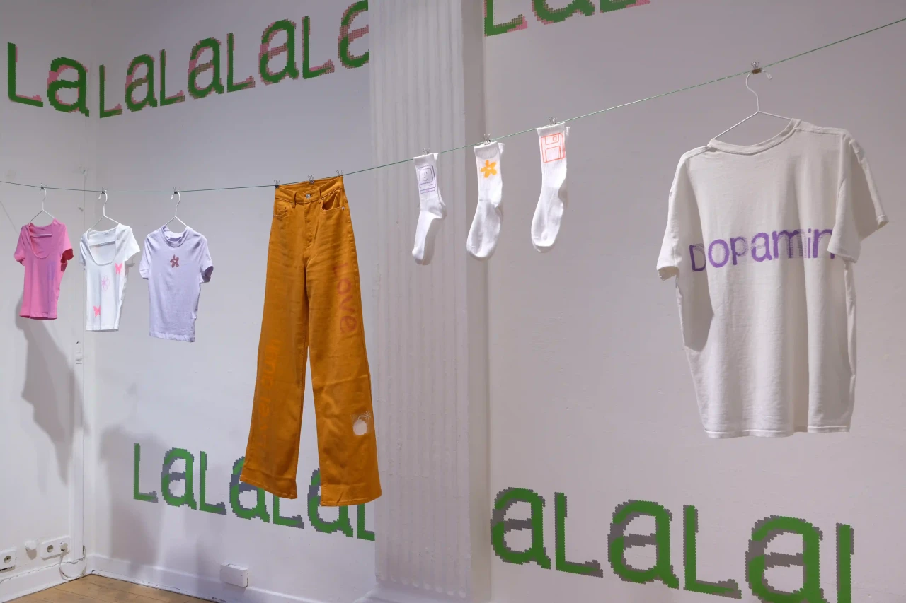 ►Kannst du dich und dein Projekt kurz vorstellen? Meine Bachelorarbeit ‹Dopamin› setzt sich mit der Frage auseinander, inwiefern die Digitalisierung und andere Einflüsse der Jahrtausendwende die Gestaltung [alltäglich und professionell] geprägt haben. Die Schrift Comic Sans als Ikone dieser Zeit bietet dabei den Ausgangspunkt der Visualisierung, die in der neu gestalteten Schrift ‹Dopamin› resultiert. ►Schüttet die Comic Sans bei dir Glücksgefühle, also Dopamin, aus? Jein. In bestimmten Anwendungen löst die Comic Sans für mich Glücksgefühle aus und es macht mich definitiv glücklich, regelmäßig Fotos von lieben Menschen geschickt zu bekommen, die der Schrift über den Weg laufen und dadurch in ihrem Alltag ab und an innehalten und an mich denken [Für diese Bilder gibt es einen eigenen Instagram-Account: @comicfans95]. Viel mehr als ein Glücksgefühl zu verursachen, wirft die Schrift jedoch durch ihre kontroverse Verhandlung unter mehr- oder-weniger-Schriftkenner*innen für mich persönlich Fragen auf, denen auf den Grund zu gehen mir große Freude bereitet. Denn jeder Wissenszuwachs macht Spaß. Außerdem hat es in mir große Glücksgefühle ausgelöst, eine eigene Schrift zu gestalten. An so ein Projekt habe ich mich mit meiner Bachelorarbeit zum ersten Mal wirklich getraut [und bin immer noch dabei es fertig zu stellen]. Ich merke, dass ich Schriftgestaltung [schon seit ich als Schulkind in meine Hefte gekritzelt habe] sehr liebe. ►Mit welchen Tools hast du gearbeitet? Was macht diese Tools für dich interessant? Da das Endprodukt eine Schrift ist, war mein Haupttool im Endeffekt natürlich das Schriftgestaltungsprogramm Glyphs. Auf der Formrecherche und in der Materialisierung – letztlich ist eine Schrift ja auch ‹nur› ein Tool – habe ich aber auch viel mit analogen Tools wie Bügelperlen, Strasssteinen, Stickerei, Siebdruck et cetera gearbeitet, die im Zusammenspiel mit Illustrator und Vectoraster zur resultierenden Form geführt haben. ►Was hat dich inspiriert? Zu der ursprünglichen Auseinandersetzung hat mich die Präsenz der Comic Sans im Alltag geführt – viel durch Aushänge, die mir beim Spazierengehen begegnet sind. Von da aus habe ich mich in Formen und Farben viel von meinen Glückshormonen steuern lassen. Um nicht unglücklich im BA-Sumpf zu versinken, war die oberste Prämisse für alles, was ich getan habe, dass es mir Spaß bereitet. Außerdem entsteht viel Inspiration durch die Wechselwirkung von analoger und digitaler Praxis. Im Endeffekt würde ich aber sagen: Alles, was wir sehen oder wahrnehmen, kann uns als Gestalter*innen inspirieren und tut dies unterbewusst wahrscheinlich öfter, als wir denken. ►Vor welche Herausforderungen hat dich das Projekt gestellt? Vor allem war bei diesem Projekt besonders und anders als bei anderen Gestaltungsprojekten wie Plakaten, Büchern oder Websites, dass ich am Ende kein fertiges Produkt hatte, das präsentiert werden konnte. Das fertige Produkt war in meinem Fall ein Tool, das dann wiederum Anwendung in anderen Medien erfordert hat, um es zu materialisieren und präsentierbar zu machen. ►Was fühlst du, wenn du auf dein Projekt schaust? Momentan einerseits immer noch Freude – trotz der langen und intensiven Auseinandersetzung mag ich es immer noch sehr. Andererseits auch ein schlechtes Gewissen. Da es sehr aufwendig ist und ich immer nur in meiner Freizeit weiter daran arbeiten kann, arbeite ich heute noch an der Fertigstellung. Mein Plan ist aber, in diesem Jahr noch eine erste Open-Source-Version zu veröffentlichen und ich freue mich schon zu sehen, was mit ihr in den Händen anderer Gestalter*innen passiert. ►Was hast du über dich an der Arbeit an deinem Projekt gelernt? Vor allem habe ich gelernt, dass es guttut, der eigenen Intuition zu folgen, es mir gleichzeitig aber wahnsinnig hilft, mich viel mit meinem Umfeld über Ideen und Gedanken auszutauschen. Und, dass es keine objektiv ‹gute› und ‹schlechte› Gestaltung gibt. Auch aus alltäglicher Gestaltung lassen sich Inspiration und Freude ziehen!