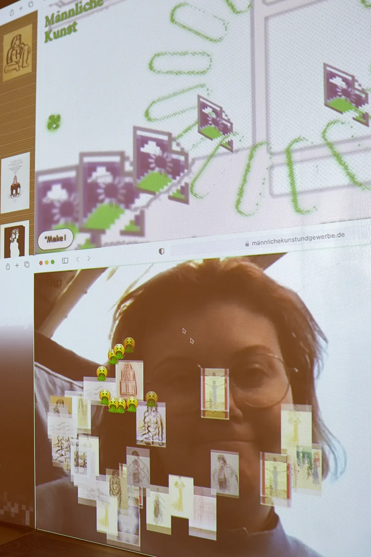 ‹Männliche Kunst & Gewerbe› ist eine Protestaktion, die das Ungleichgewicht der Sammlung des Museums für Kunst & Gewerbe Hamburg aufzeigt und anprangert. Nach einer Auswertung aus dem Jahr 2022 sind nur 1,5 % der 400 000 Werke in der Grafiksammlung von FLINTA* Gestalter*innen. Noch seltener wurden Arbeiten von BIPoC, außereuropäischen oder migrantischen Gestalter*innen erworben. Dieses nicht wieder aufholbare Ungleichgewicht zeigt anschaulich, mit welcher immer noch existierenden Unterrepräsentation Künstler*innen und Gestalter*innen konfrontiert sind. Diese Versäumnisse verdeutlichen nicht nur ein unermessliches Vakuum, sondern werfen die Frage nach den Arbeiten auf, die hierdurch verloren gegangen sind. Die Sammlungserweiterung in der heutigen Museumslandschaft hat sich stark verändert. Museen sind zunehmend auf Schenkungen und Leihgaben privater Sammler*innen angewiesen, da für die Akzession kaum noch Ressourcen und Budget zur Verfügung gestellt werden. Beim Erweitern der Sammlung werden daher oft die bestehenden Verhältnisse reproduziert, weswegen der institutionelle Wandel stagniert oder ausbleibt. Es benötigt kritische Impulse von Außen, die bestehende Missstände reflektieren und anprangern, um der Radikalität des Status Quo entgegenzuwirken. Mit einer Sammlung spekulativer Websites und aktivistischer, digitaler Artefakte möchte das Projekt einen Scheinwerfer auf die dunklen Ecken großer Kunst- und Designinstitutionen richten. In der digitalen Parallelwelt erleichtert der Deakzessions-Countdown unbürokratisch die Sammlung um die Hälfte ihrer Werke, werden Forderungen und Fragen mit einer Überheblichkeit à la Mike Meiré gestellt, während wertvolle Objekte nicht wiederhergestellt werden können und als ‹Broken Images› in einem unendlichen Scroll in Vergessenheit geraten. Auf spielerisch informierende Weise werden Kritik und Denkanstöße angeboten, um die vorherrschende Problematik der Unterrepräsentation zu veranschaulichen. Mit Fokus auf die Absurdität des dadurch entstandenen Ungleichgewichts protestiert ‹Männliche Kunst & Gewerbe› gegen resultierende Versäumnisse.