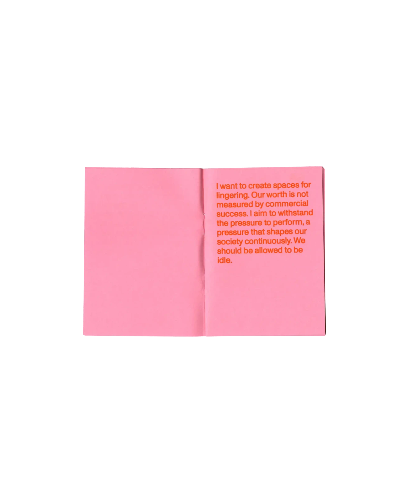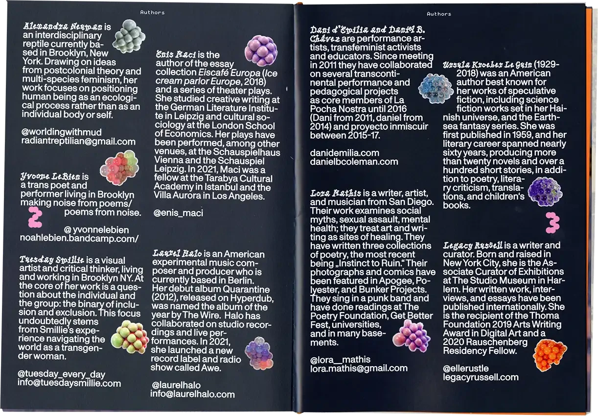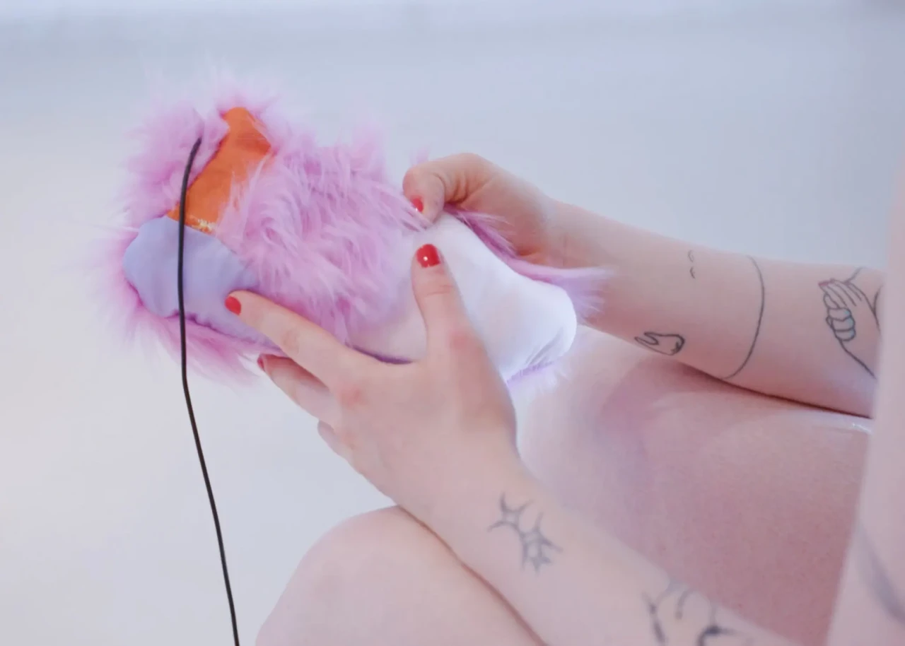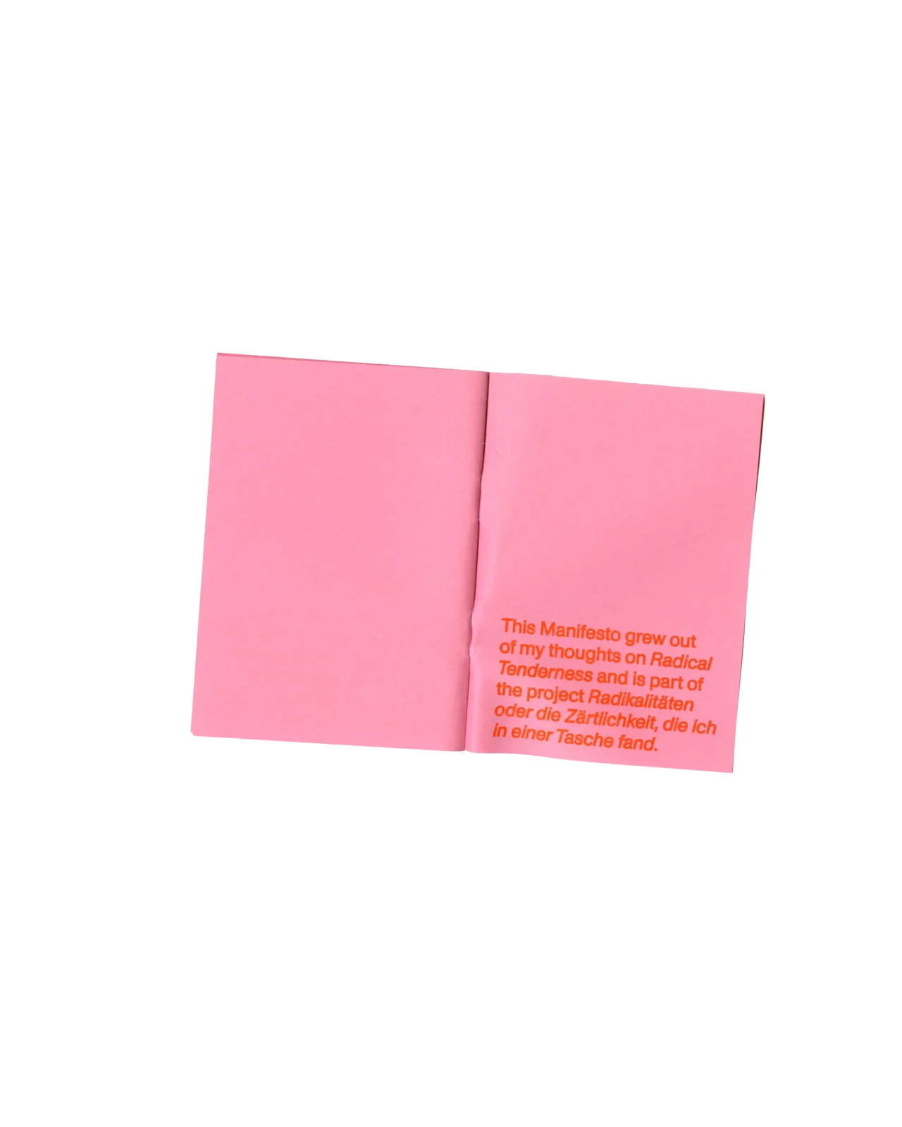 ►Kannst du dich und dein Projekt kurz vorstellen? In meiner Abschlussarbeit habe ich Formen der Radikalität untersucht und plädiere hierbei für ein breites Narrativ, da Radikalität zu oft in den Kontext von Gewalt oder Krisen gesetzt wird. Wir brauchen meiner Meinung nach aber Radikalität, um eine bessere Gesellschaft zu werden*. In meiner Arbeit wird Perspektiven Raum gegeben, die einen radikalen Ansatz in ihrem Schaffen verfolgen. Sie ist eine Sammlung von Texten, Farben, Haptik und Sound und bildet eine persönliche Darstellung von Radikalität in künstlerischer Form. Die Art, wie wir kommunizieren, erzählen und gestalten, kann ein erster Ansatz für die Veränderung eines Zustands in der Gesellschaft sein, weshalb wir uns radikal mit Verhältnissen auseinandersetzen müssen, was ich sowohl privat als auch in meiner gestalterischen Arbeit tue. ►Der Name lässt Raum für Fragen. Kannst du erzählen, wie du darauf gekommen bist? Und vielleicht auch was er für dich bedeutet? Der Titel der Arbeit kommt vor allem aus meinem theoretischen Teil. Für mich war das Erarbeiten der Theorie sehr bedeutsam. Da ich mich der Radikalität und vor allem der Radikalen Zärtlichkeit gewidmet habe, kommt dies auch im Titel vor. Ich spanne innerhalb der Arbeit den Bogen zur mittlerweile [zum Glück] ‹trending carrier bag of theory of fiction›, in der es heruntergebrochen ums Sammeln und um antipatriarchales [Geschichten-] Erzählen geht. Dieser Ansatz geht für mich eben auch mit dem Konzept der radikalen Zärtlichkeit einher, weil es hier vor allem darum geht, den rassistischen und kapitalistischen Status quo unserer Gesellschaft zu überwinden. Dieser fußt, wie wir ja alle wissen auf dem Patriarchat. Die Tragetaschentheorie kommt also auch im Titel vor. ►Kannst du uns einen Einblick in deinen Gestaltungsprozess geben? Wie bist du vorgegangen? Wie gesagt, ich habe mich vorangehend eher mit der Theorie beschäftig und dann kam sehr intuitiv ein visuelles Konzept in Farben, Formen und Stofflichkeiten dazu. Ich wollte räumlich arbeiten und habe versucht einen Ort zu schaffen, an dem Besucher*innen beobachten könnten, ohne lediglich konsumieren zu müssen. Ich wusste bis zum Tag vor der Prüfung nicht, wie alles letztendlich im Raum aussehen würde, weshalb ich flexibel denken musste. Ein Netz, was begehbar ist als Anlehnung an die Carrier Bag. Die Kissen symbolisieren Körper, weil diese grundlegend für Radikalität sind. Jeder Gegenstand der Installation hat einen metaphorischen Bezug zur Theorie. Der Reader und die Audiovisionen waren mir wichtig als ein Format, welches Wissen und Gedanken in textlicher Form enthält. Die gesammelten Texte darin haben mich teilweise auch bei der Gestaltung inspiriert. Das Mini-Manifesto kam zum Schluss dazu und ist meine persönliche Schlussfolgerung aus der Theorie, wo ein radikal zärtlicher Ansatz nochmals festgehalten wird. Während der Ausstellung gab es auch Sound, der passend zum Konzept komponiert war. Das war für die räumliche Atmosphäre auch noch mal wichtig. ►Mit welchen Techniken hast du gearbeitet? Ich habe vor allem gelesen und es war total schön, sich so tiefgreifend mit einem Thema auseinandersetzen zu können. Ich habe auch genäht, gefärbt, kleine Skulpturen gemacht. Für die Printsachen hab ich gesiebdruckt und riso-gedruckt und mir eine Bindung überlegt, die zum Konzept passt. Eine Freundin hat manche Texte eingelesen, falls man nicht lesen will oder kann. Es war viel Trial-and-Error, aber insgesamt hat mir das Arbeiten an dem Projekt viel Spaß gebracht. ►Wer hat dich inspiriert? Die, die sich mit radikalen Ansätzen für eine bessere Gesellschaft auseinandersetzen und das in textlicher oder visueller Form festhalten. Die Autor*innen, die ich im Reader gesammelt habe, Seyda Kurt, der Cyber Feminism Index und Freund*innen, die sich mit ähnlichen Themen beschäftigen. ►Was fühlst du, wenn du auf dein Projekt schaust oder an dein Projekt denkst? Erstmal fühle ich eine Art Nostalgie, weil mit diesem Projekt mein erstes Studium und damit prägende Jahre zu Ende gingen. Ich hab die Arbeit an so einem intensiven Projekt sehr genossen und denke gern an die Bachelormonate zurück. Wobei die Arbeit an dem Thema damit nicht abgeschlossen ist, das sind ja oft auch Lebensthemen, mit denen man sich da beschäftigt. Ich merke auch immer erst in so Momenten, wenn ich darüber schreibe oder spreche – wie jetzt gerade –, was alles dahinter steckt und was man von außen betrachtet vielleicht erstmal gar nicht wahrnimmt. ►Was ist dir besonders wichtig an deinem Projekt? Mir ist wichtig, dass wenn wir uns als Designer*innen oder Künstler*innen politischen Themen widmen, dabei authentisch bleiben müssen. Das heißt für mich auch, sich nicht politischen Verhältnissen bedienen und daraus oder damit Gestaltung machen. Politisch zu sein muss beim Menschen anfangen, nicht erst bei der Gestaltung. Meine Arbeit ist auch nicht in-your-face-politisch, im ersten Moment ist sie einfach schön anzusehen. Aber da es ein sehr persönliches, bedachtes Projekt ist, finde ich das okay. Ich wollte zärtlich zu mir und meinem Gestaltungsprozess sein und hab daher auch etwas Abstand genommen zu den typischen Methoden, die ich bisher im Studium erlernt habe.
