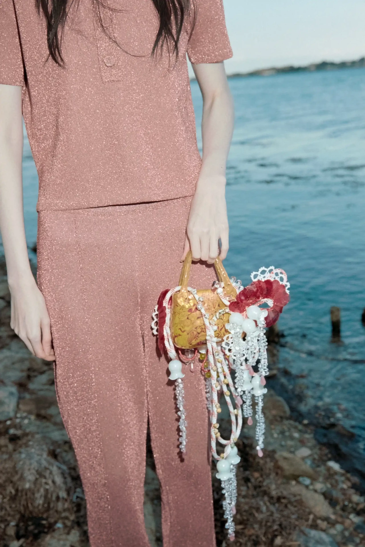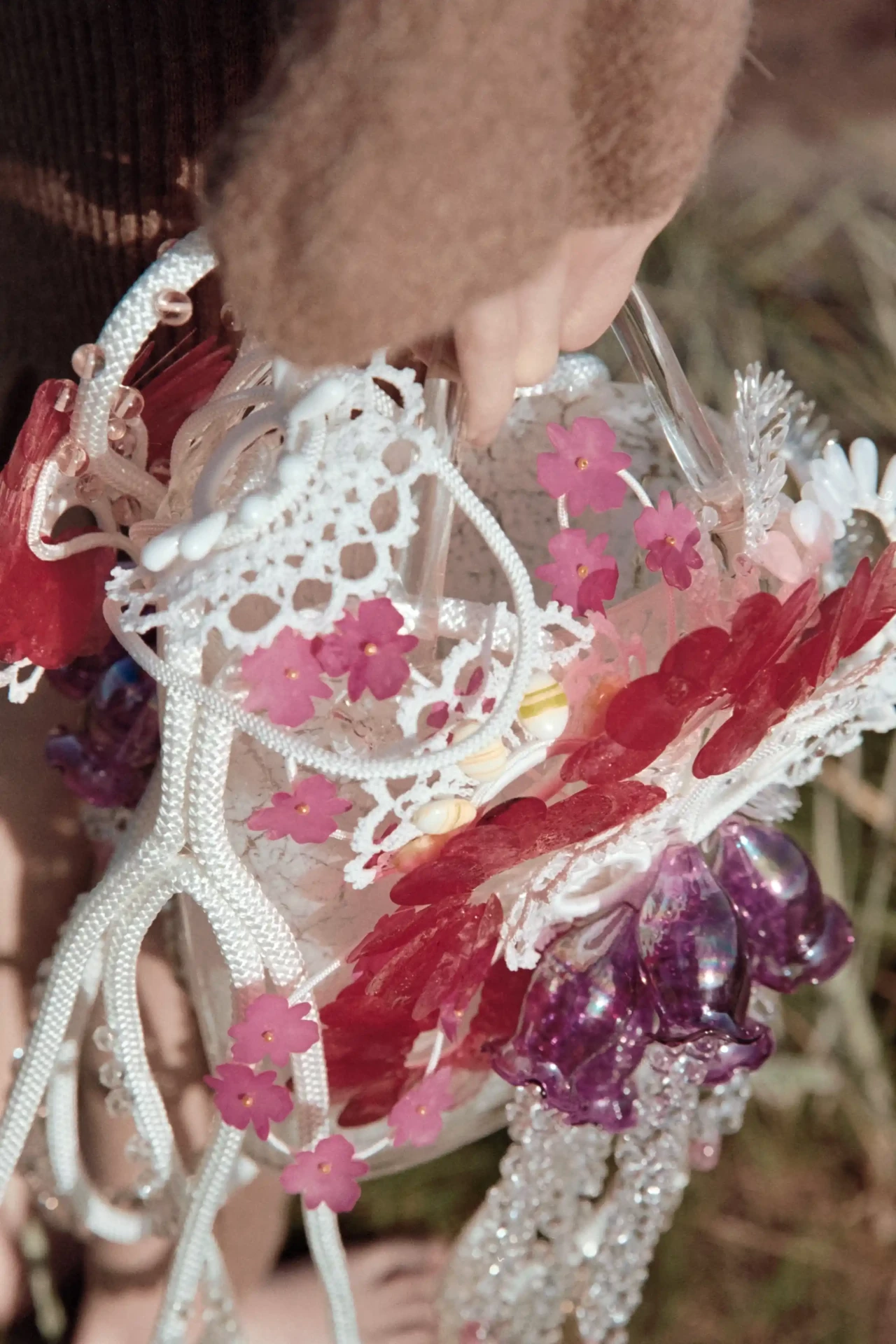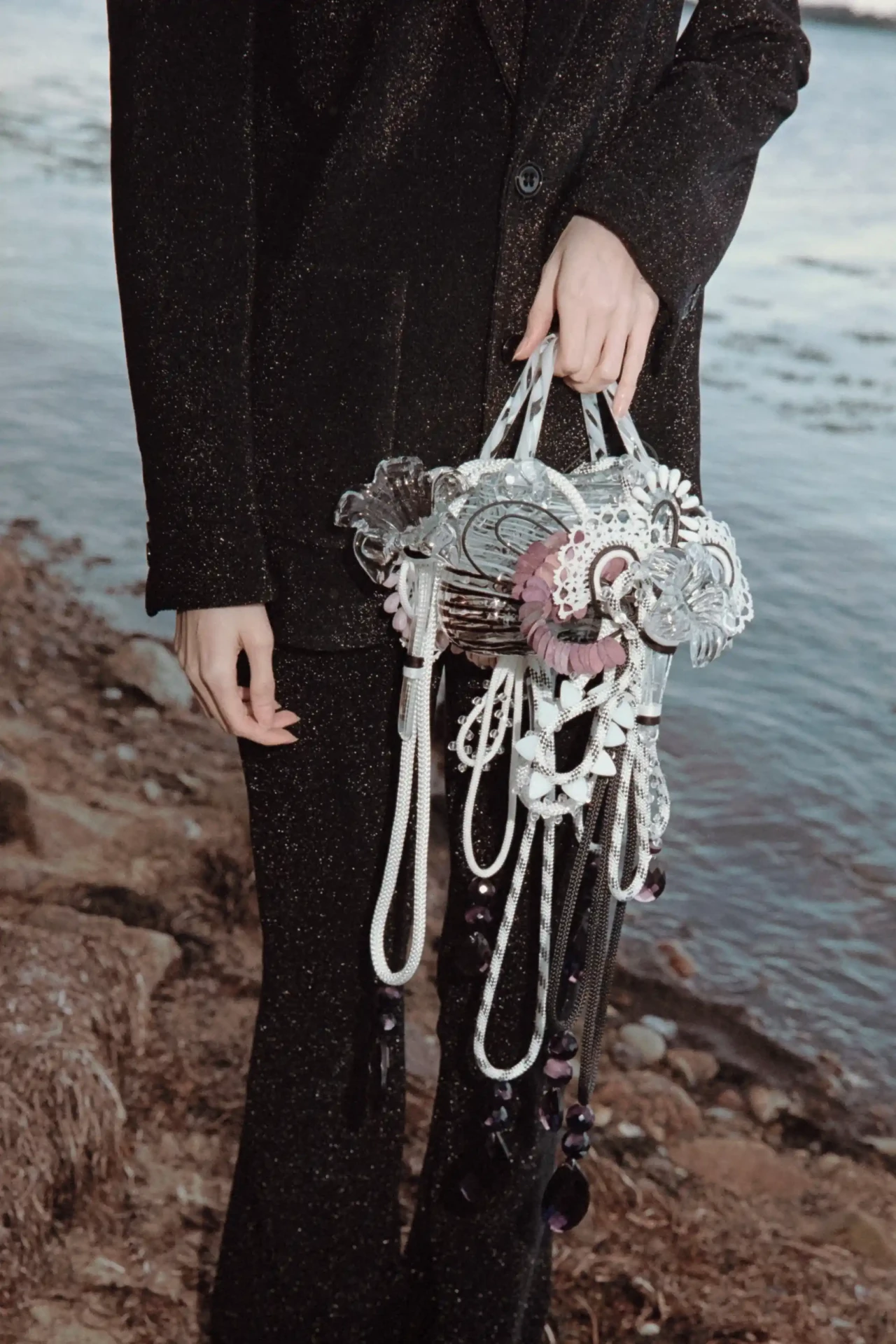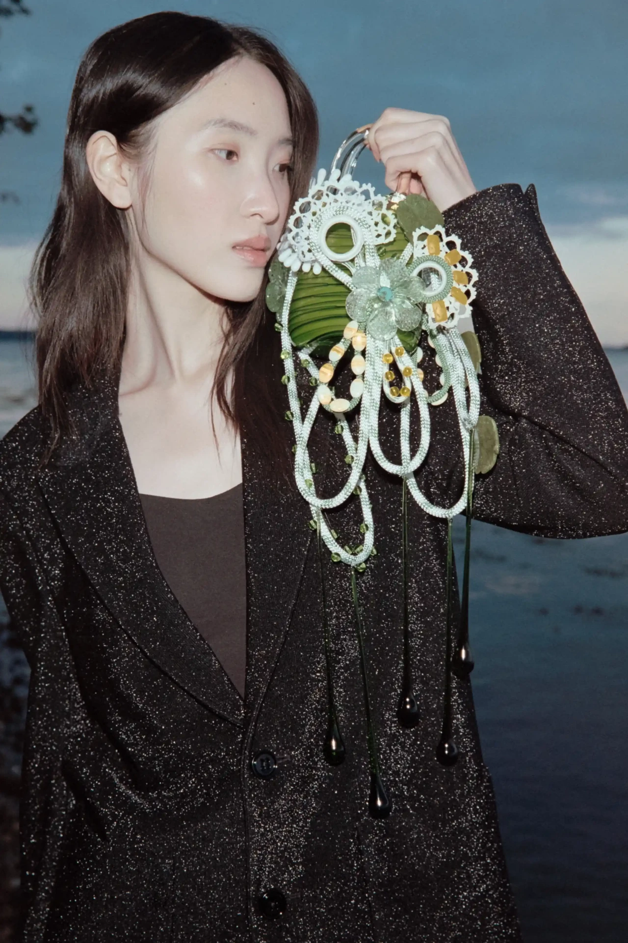►Kannst du dich und dein Projekt kurz vorstellen? Mein Name ist Christiane Schwambach. Ich bin eine deutsche Designerin und Künstlerin und lebe zurzeit in Hamburg. Ich habe Modedesign an der Hochschule für Angewandte Wissenschaften in Hamburg studiert und befinde mich momentan im Masterstudiengang. Meine nachhaltige Kollektion aus Glastaschen ‹Rare Flowers› ist inspiriert von naiven, floralen Gemälden und Mutter Natur. Sie spiegelt wider, wie schön und zerbrechlich zugleich unsere Natur ist. ►Mit welchen Techniken hast du gearbeitet? Ich suche, finde und sticke. Die Taschen können nur im Stehen gefertigt werden. Alles ist per Hand genäht und bestickt. ►Kannst du uns von deinem Gestaltungsprozess erzählen? Ich habe über einen sehr langen Zeitraum verschiedene Secondhand Fragmente, Objekte und Vintage-Stoffe gesammelt. Das Ergebnis ist eine nachhaltige Slow-Couture-Kollektion. Jede Glastasche ist ein komplexes, innovatives und kreatives Unikat. In diesem Prozess habe ich grenzüberschreitend gearbeitet. Ich habe mich frei aus Kunst, Handwerk, Manufaktur sowie Natur bedient. Ich schuf jede Tasche individuell und in einem intuitiven Prozess. Es fühlt sich an, als würde ich ein Gemälde oder ein Lied komponieren, mit vielen verschiedenen Noten, die über die Taschen laufen. ►Wer oder was inspiriert dich? Grundsätzlich finde ich in vielen unterschiedlichen Bereichen Inspiration. Es ist alles miteinander verbunden und unterstützend. In diesem speziellen Projekt waren es Malerei, Natur und Musik. Farben sind für mich auch sehr essenziell. Das Zusammenspiel unterschiedlicher Farben, Formen und verschiedener Materialien, die vielleicht auf den ersten Blick nicht miteinander verbunden sind und/oder sehr unterschiedliche Funktionen haben. ►Was möchtest du mit deiner Kollektion bei den Menschen bewirken, und welche Botschaft möchtest du vermitteln? Diese Arbeit ist eine Einladung, die eigene Umgebung und alles, was uns umgibt, aktiv und bewusst wahrzunehmen und zu beobachten. Es geht darum, die Funktionen von Objekten zu hinterfragen, die Form oder den eigentlichen Zweck in etwas anderes umzuwandeln, wenn es nötig ist, um etwas Neues zu schaffen, unsere Ressourcen und unsere Erde zu schützen. Dazu gehört auch die Wertschätzung des einzelnen Fragments und die damit verbundene künstlerische Erkundung und Neuzusammensetzung einer großen Vielfalt von Materialien und Materialitäten. Das Konzept kombiniert das Alte und das Neue und ist gepaart mit einem modernen, reflektierten, starken Frauenbild des 21. Jahrhunderts, das Verantwortung übernimmt. ►Was war die größte Herausforderung für dich? Jeder Designprozess ist mit Research und dem Sammeln von Informationen verbunden. Ich würde es nicht unbedingt als Herausforderung bezeichnen. Vielleicht ein wenig, am Anfang des Prozesses. Wenn ein gewisser Punkt überschritten ist, fügt sich alles zusammen. Ein neues, komplexes Narrativ entsteht. Wenn das Design und das Narrativ zusammenwachsen und sich ein rundes Gesamtkonzept entwickelt, ist das der schönste Augenblick für mich. Der Kreis schließt sich. ►Wie sieht deine Vision für die Zukunft von nachhaltigem Design in der Modebranche aus? Weniger Konsumieren, Produzieren unter besseren, fairen Bedingungen für die Produktion und die Natur. Für mich persönlich gibt es zwei Wege: Entweder kaufen wir langlebigere Kleidung, die besser gefertigt wird. Diese hat oft ihren Preis, dessen bin ich mir bewusst. Oder wir arbeiten für vorhandene Ressourcen. Es geht um einen bewussten Umgang mit dem, was uns zur Verfügung steht. Wo kommen die Kleidungsstücke her, wer hat sie wie gefertigt und unter welchen Bedingungen?