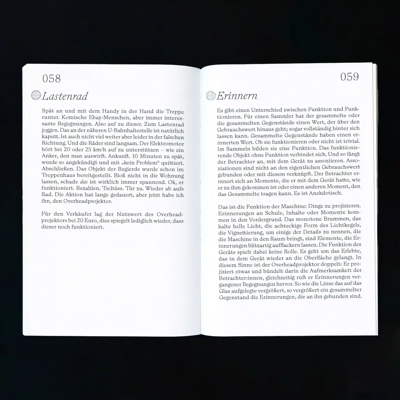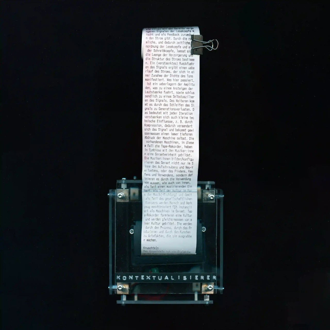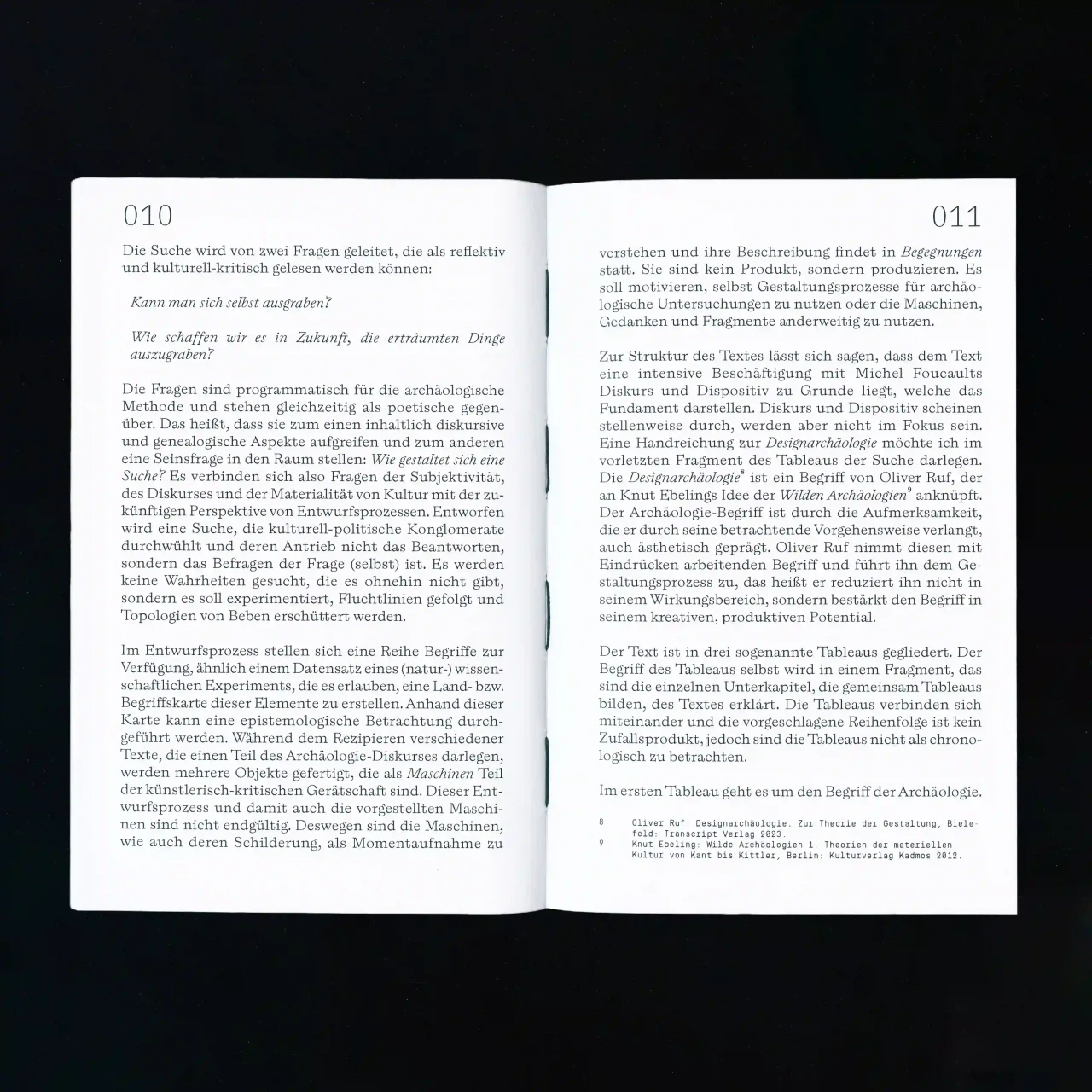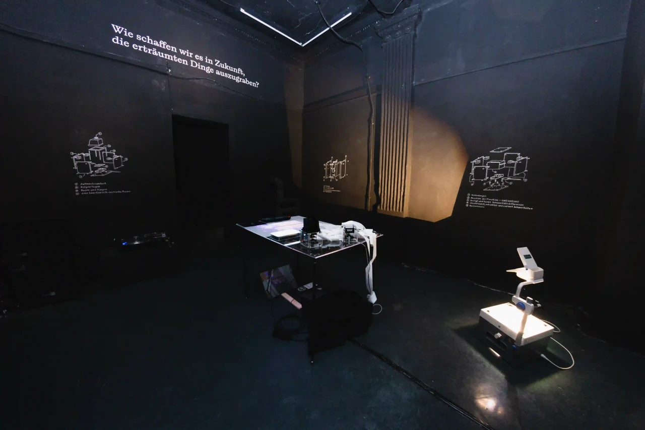 ►Um was geht es in deinem Projekt? Mit welchem Thema hast du dich befasst? Die Arbeit zielt darauf ab, einen Verstehensprozess durch gestalterische Arbeit zu bewegen, sicht- und nachvollziehbar zu machen. In der Beschäftigung mit verschiedenen Texten und Begriffen sind Schichten, also Zusammenhänge dieser Begriffe, ähnlich einer archäologischen Untersuchung, freigelegt worden. Daraus werden rhapsodische Maschinen konstruiert, die helfen, die Schichten und den eigenen Standpunkt in diesen zu entfalten. Das Wort rhapsodisch setzt sich aus den altgriechischen Wörtern rhápto [zusammennähen] und odē [Gesang] zusammen. Fragmente werden verbunden und bekommen so einen Körper – sie werden rhapsodisch. Dabei leiten die folgenden zwei programmatischen und poetischen Fragen den Prozess der Suche an: Kann man sich selbst ausgraben? Wie schaffen wir es in Zukunft, die erträumten Dinge auszugraben? So hangelt sich die Arbeit an einer archäologischen Methode entlang, um in einem Entwurfsprozess Denkbilder zu schaffen, die als Teil einer kritisch-künstlerischen Praxis zur Erkenntnisgewinnung angeschlossen werden können. ►Was ist alles Teil deiner Arbeit? Sieben Maschinen und ein kleines Buch mit dem theoretischen Teil der Thesis. Die Maschinen sind multimedial: von Soundpiece bis Webseite. ►Was hat dich inspiriert? Unter anderem, aber ganz besonders: Walter Benjamins Texte. ►Kannst du von deinem Arbeitsprozess erzählen? Im Prozess des Lesens und Verstehens von Texten, Themen und Begriffen sind Maschinen entstanden. Das heißt, ich habe mich den Texten und Begriffen angeschlossen und ihre Geflechte und Windungen mithilfe von Methoden gestalterischer Praxis nachvollzogen. ►Was hast du durch dein Projekt gelernt? Zu lernen, einen abduktiven Prozess mit eigenen Strukturen und Fragestellungen zu führen – einen Prozess der künstlerischen Forschung. ►Was sollen Betrachter*innen aus deinem Projekt mitnehmen? Welche Wirkung möchtest du erzielen? Betrachter*innen sollen die Möglichkeit bekommen, das Netzwerk der Maschinen zu erfahren und damit nachvollziehen zu können. Sie sollen selbst in der Lage sein, mit den Maschinen in ein Verhältnis zu treten, das ihnen ermöglicht neue Artefakte zu bergen.