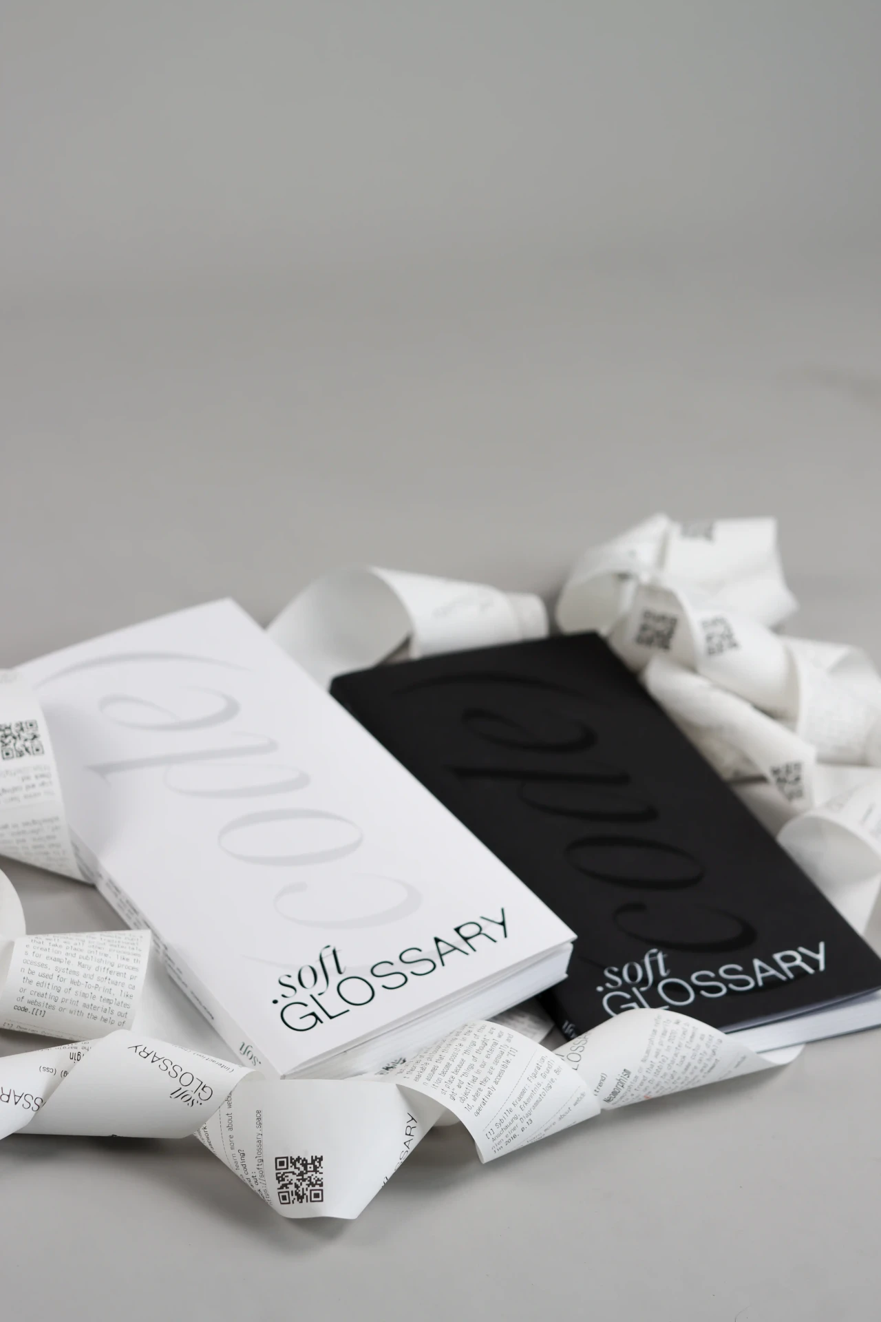 ►Könnt ihr euch und euer Projekt kurz vorstellen? Wir sind Isabell und Gina und haben bis Anfang 2023 beide an der HAW Kommunikationsdesign studiert. In diesem Rahmen ist das Projekt ‹.softGlossary› entstanden, welches unsere Masterarbeit bildet. Es untersucht das Verhältnis von analogen und digitalen Medien und geht der Frage nach, wie sinnvoll es ist, Webseiten mit Printobjekten zu vergleichen. Warum werden diese beiden Medien trotz ihrer offensichtlichen Unterschiede immer wieder in Beziehung zueinander gesetzt? Ist das Web eine Weiterentwicklung des Buches und wird es zu dessen Niedergang führen, wie schon häufig prophezeit wurde? Das Medium Buch steht wie kein anderes Objekt für den kulturellen Übergang in eine postdigitale Gesellschaft. Aber Papier ist nicht mehr die einzige Möglichkeit, Inhalte zu bewahren und zu verbreiten. Das Konzept des World Wide Web bietet völlig neue Möglichkeiten – unser Projekt erforscht genau diese. Das Ergebnis ist ein Buch und ein digitales Glossar in Form einer Website, welches die Ergebnisse unserer Recherche zusammenfasst und gleichzeitig anderen Designer*innen zur Verfügung stellt. Unter https://softglossary.space/ könnt ihr euch unser Projekt ansehen. ►Was macht das Thema ‹Coden› für euch besonders interessant? Seit einigen Jahren lässt sich ein Umschwung innerhalb der Designszene beobachten. Immer mehr Designer*innen erkennen und nutzen die Chancen von Code als Designwerkzeug. Besonders der Begriff des Creative Coding hat in den letzten Jahren an Popularität gewonnen. Dieser wird häufig mit Frameworks wie processing oder p5.js in Verbindung gebracht, die besonders unter Designer*innen und Künstler*innen aufgrund ihrer anfänger*innenfreundlichen Umgebung recht beliebt sind. Aber nicht nur die Verwendung dieser Frameworks, sondern auch eine gewisse Ästhetik, die ganz bewusst computergeneriert aussieht, wird häufig mit Creative Coding in Verbindung gebracht. Hingegen wird die Entwicklung von Websites selten unter diesem Begriff aufgeführt. Dabei ist Creative Coding eigentlich nicht auf ein bestimmtes Endprodukt festgelegt, sondern bezeichnet einen entdeckungsbasierten Prozess, der aus Erforschung, Iteration und Reflexion besteht und bei dem Code als primäres Medium verwendet wird. Unserer Ansicht nach wohnt nicht nur Creative Coding, sondern Coding im Allgemeinen immer auch ein gewisser kreativer Prozess inne, selbst wenn dabei ein im Vorfeld bereits definiertes Ziel verfolgt wird. Denn der Weg zu diesem Ziel verläuft selten linear und wirft in den meisten Fällen ständig Probleme und neue Fragestellungen auf, die eine kreative Lösung verlangen. Zudem kann allein der Aufbau des Codes auf unterschiedlichste Arten erfolgen und zudem die unterschiedlichsten Handschriften tragen. Code lässt sich somit bereits als eigenes kreatives Produkt betrachten. Coding ist unserer Ansicht nach deshalb nicht nur ein technisches Werkzeug, sondern kann wie Design als eine eigene Praxis und Denkweise betrachtet werden. Diese ist, analog zu Design, auf die Lösungsfindung fokussiert. Hierbei allerdings sehr stark von Technologie geprägt und auf diese ausgerichtet. Dabei ist Coding ebenfalls auf keine Form oder finales Produkt festgelegt – eine Website ist deshalb nur eines von vielen möglichen Anwendungsbeispielen. Auch der Aspekt, dass Coding als technisch und dementsprechend allgemein als eher männlich konnotierte Tätigkeit angesehen wird, im Vergleich zu Design, fanden wir superspannend. Software- und Web-Entwicklung ist ein durchaus lukratives Berufsfeld: Das Durchschnittsgehalt einer Entwickler*in liegt aktuell weit über dem einer klassischen Grafikdesigner*in. Obwohl es in der Designbranche durchschnittlich mehr Frauen als Männer gibt, existiert auch hier die Gender Pay Gap, was bedeutet, dass männlich gelesene Designer häufig mehr verdienen als weiblich gelesene Designerinnen. Betrachtet man dann, dass die am höchsten bezahlten Designstellen häufig im UX-Bereich liegen, in denen meistens ein gewisses Coding und Technikverständnis vorausgesetzt wird, kann die Fähigkeit zu coden als Designer*in also nicht nur als selbstermächtigend, sondern auch als emanzipierend angesehen werden. Das Wissen über Technologie mit dem Verständnis von Gestaltung zu verknüpfen, empfinden wir deshalb umso mehr als enorm bereichernd für die Designpraxis. Unser Projekt richtet sich deshalb bewusst an Designer*innen. Unser Ziel ist es dabei nicht nur Designer*innen für Coding zu begeistern, sondern zusätzlich einen Rahmen zur Sensibilisierung und Wertschätzung für die Gestaltung von Websites zu schaffen. Ein grundlegendes Verständnis von Webprogrammierung ermöglicht es Designer*innen über das, was sie von anderen Websites kennen und die Möglichkeiten, die durch Layout-Programme vorgegeben werden, hinauszudenken, wodurch sie Websites ganzheitlicher aus konzeptioneller Sicht betrachten können. Die visuelle Gestaltung unseres Glossars spiegelt dabei das thematische Spannungsfeld zwischen analog und digital sowie zwischen Grafikdesign und Webdesign wider. ►Wie hat sich die Recherche und der theoretische Teil eurer Arbeit gestaltet? Wir sind der Meinung, dass Print und Web viel voneinander lernen und sich gegenseitig bereichern können. Deshalb haben wir uns im theoretischen Teil unserer Masterthesis mit der geschichtlichen Entwicklung der beiden Medien auseinandergesetzt. Dazu zählt beispielsweise der schon häufig prognostizierte Niedergang des Buchs im Zuge der Digitalisierung oder das im Web implementierte Konzept des Hypertexts. Wir erachten die geschichtliche Beleuchtung beider Medien als sinnvoll, da sie zu großen Teilen die Gestaltung dieser beeinflussten. Um Prozesse, Zusammenhänge und Beziehungsverhältnisse von Medien besser verstehen zu können, haben wir uns tiefer mit Medientheorie beschäftigt. Als Kommunikationsdesigner*innen sind Medien essenzielle Werkzeuge des gestalterischen Tätigkeitsfelds. Denn Design
