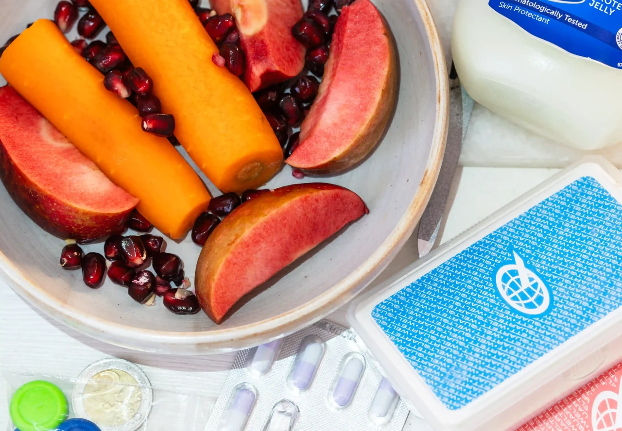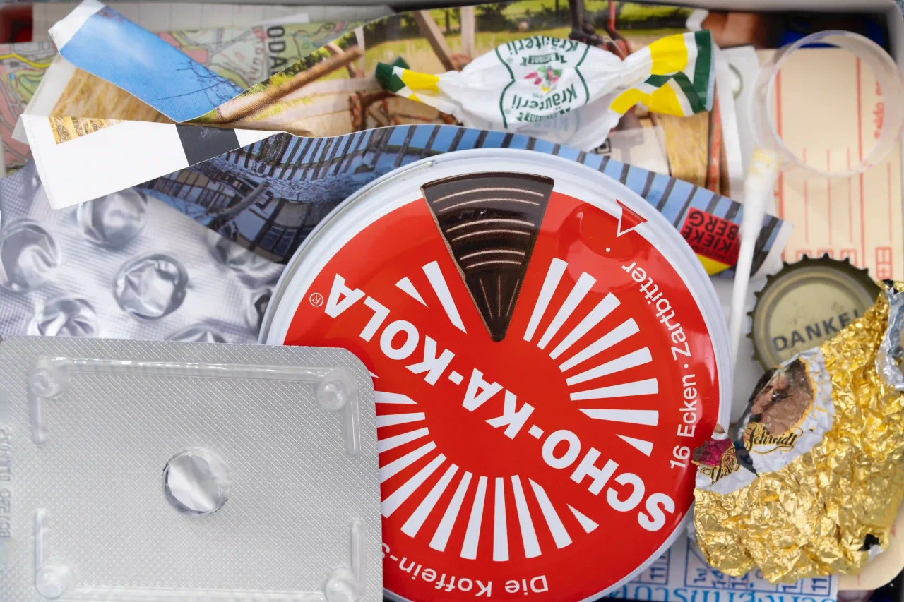 ►Kannst du dich und dein Projekt kurz vorstellen? Ich heiße Antje und studiere Kommunikationsdesign im vierten Semester. Plastikverpackungen, dreckige Haarbürsten, angetrocknetes Gemüse, Fingernägel, Mandarinenschalen, Luftpolsterfolie, schwitzender Käse, Kleiderberge, Müslireste, gelbe Blätter, tote Insekten, alte Süßigkeiten, Münzen, Tablettenblister und Staub: Meine Fotoserie behandelt über Tage und Wochen gebildete Akkumulationen von Gegenständen in einer Wohnung. Dort abgelegt, wo sie zuletzt gebraucht wurden, entstehen Stillleben à la Wolfgang Tillmans. Diese Szenen sind eine Auseinandersetzung mit Kontrollzwang und Werturteilen, eine Akzeptanz von Chaos und eine Wertschätzung chaotischer Zustände im Alltag. Kontraste wie organisch–künstlich, ekelerregend–appetitlich, kaputt–heil, sauber–dreckig werden aufgelöst und die Gegenstände einem unvoreingenommenen Blick ausgesetzt. ►Wie bist du auf die Idee gekommen, eine Fotoserie über die Akkumulation von Gegenständen in einer Wohnung zu erstellen? Ich hab in der Wohnung eine Schale mit eingestaubten Nimm-zwei-Bonbons gesehen und das fotografiert. Ich fand es spannend zu sehen, dass ich lange keine Bonbons mehr gegessen habe. Außerdem gefiel mir diese merkwürdige Kombination aus einem Bonbon, das ja eher schnell gegessen oder in Taschen rumgetragen wird und dieser Staubschicht. Das hatte ich so noch nicht gesehen. Da dachte ich, was für merkwürdige Kombinationen finden sich in der Wohnung noch so, die ich fotografieren kann? Das Foto mit den Bonbons ist letztendlich gar nicht in der Serie gelandet. ►Wie wählst du die Gegenstände aus, die in deinen Stillleben dargestellt werden? Gibt es eine bestimmte Auswahlmethode oder ist es eher spontan? Ich hab auf Farben geachtet, zum Beispiel finden sich in vielen Fotos die Farben Gelb, Blau und Rot, auch Pink kommt vor. Mir war wichtig, Bezug auf traditionelle Stillleben Themen wie Vergänglichkeit zu nehmen, also habe ich Organisches fotografiert wie Obst, Gemüse, Haare und Fingernägel, Insekten. Dann wollte ich dazu einen Kontrast herstellen: Plastik, Kabel, Verpackungsmüll, Tablettenblister, Post-Its, Spielkarten, Luftpolsterfolie, Polyester. ►Was gefällt dir am meisten an deinem Projekt? Die Farben und wie sich alles zusammengefügt hat: Ich sehe aktuell in Fotoprojekten viele entsättigte Farben und mir gefällt an meinem Projekt, dass es bunt und laut ist, das war mir wichtig. Ich bekomme gute Laune, wenn ich bunte Farben sehe. Wie sich ein grober Plan im Laufe des Projekts fast von alleine immer mehr verfestigt und am Ende aus einzelnen voneinander erstmal unabhängigen Fotos eine eigene kleine Gruppe in einer eigenen Welt entsteht. ►Was war die größte Herausforderung für dich während der Arbeit an deinem Projekt? Der Druckprozess war eine große Herausforderung. Es gibt so viele verschiedene Dinge, auf die man gleichzeitig achten muss, und bei jedem Testdruck hab ich irgendwas davon vergessen. ►Würdest du heute etwas anders machen? Ich habe bei diesem Projekt viele unterschiedliche Bildformate benutzt und würde das in Zukunft nicht mehr machen. ►Wer oder was inspiriert dich? Alles, was mir im Alltag begegnet. In letzter Zeit die Gestaltung von Speditions-LKWs oder Reisebussen, Baustellen, Autobahnfahrten, zufällige Sachen wie zum Beispiel Farbkombinationen im Kompost ...