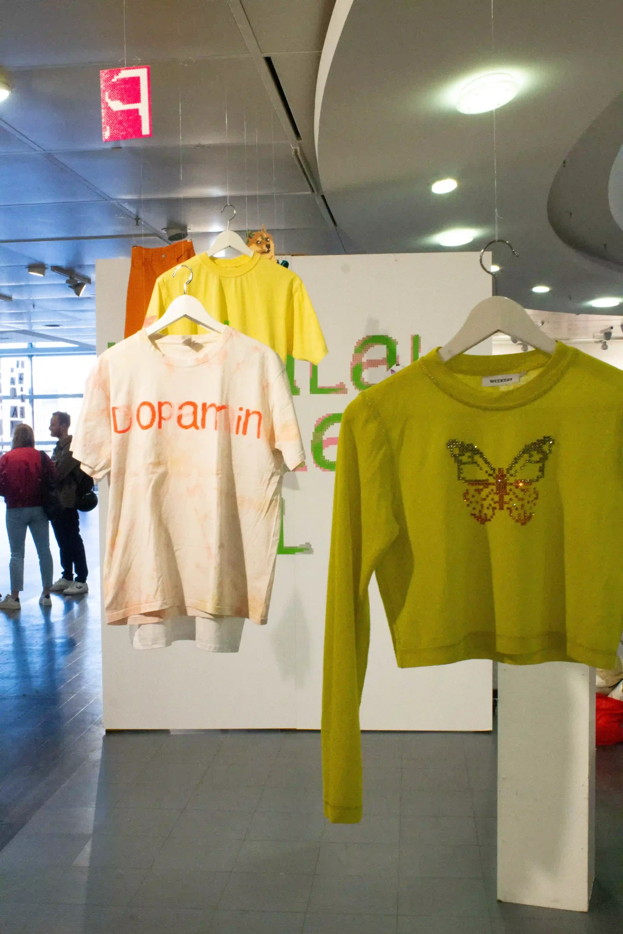 ►Kannst du dich und dein Projekt kurz vorstellen? Meine Bachelorarbeit ‹Dopamin› setzt sich mit der Frage auseinander, inwiefern die Digitalisierung und andere Einflüsse der Jahrtausendwende die Gestaltung [alltäglich und professionell] geprägt haben. Die Schrift Comic Sans als Ikone dieser Zeit bietet dabei den Ausgangspunkt der Visualisierung, die in der neu gestalteten Schrift ‹Dopamin› resultiert. ►Schüttet die Comic Sans bei dir Glücksgefühle, also Dopamin, aus? Jein. In bestimmten Anwendungen löst die Comic Sans für mich Glücksgefühle aus und es macht mich definitiv glücklich, regelmäßig Fotos von lieben Menschen geschickt zu bekommen, die der Schrift über den Weg laufen und dadurch in ihrem Alltag ab und an innehalten und an mich denken [Für diese Bilder gibt es einen eigenen Instagram-Account: @comicfans95]. Viel mehr als ein Glücksgefühl zu verursachen, wirft die Schrift jedoch durch ihre kontroverse Verhandlung unter mehr- oder-weniger-Schriftkenner*innen für mich persönlich Fragen auf, denen auf den Grund zu gehen mir große Freude bereitet. Denn jeder Wissenszuwachs macht Spaß. Außerdem hat es in mir große Glücksgefühle ausgelöst, eine eigene Schrift zu gestalten. An so ein Projekt habe ich mich mit meiner Bachelorarbeit zum ersten Mal wirklich getraut [und bin immer noch dabei es fertig zu stellen]. Ich merke, dass ich Schriftgestaltung [schon seit ich als Schulkind in meine Hefte gekritzelt habe] sehr liebe. ►Mit welchen Tools hast du gearbeitet? Was macht diese Tools für dich interessant? Da das Endprodukt eine Schrift ist, war mein Haupttool im Endeffekt natürlich das Schriftgestaltungsprogramm Glyphs. Auf der Formrecherche und in der Materialisierung – letztlich ist eine Schrift ja auch ‹nur› ein Tool – habe ich aber auch viel mit analogen Tools wie Bügelperlen, Strasssteinen, Stickerei, Siebdruck et cetera gearbeitet, die im Zusammenspiel mit Illustrator und Vectoraster zur resultierenden Form geführt haben. ►Was hat dich inspiriert? Zu der ursprünglichen Auseinandersetzung hat mich die Präsenz der Comic Sans im Alltag geführt – viel durch Aushänge, die mir beim Spazierengehen begegnet sind. Von da aus habe ich mich in Formen und Farben viel von meinen Glückshormonen steuern lassen. Um nicht unglücklich im BA-Sumpf zu versinken, war die oberste Prämisse für alles, was ich getan habe, dass es mir Spaß bereitet. Außerdem entsteht viel Inspiration durch die Wechselwirkung von analoger und digitaler Praxis. Im Endeffekt würde ich aber sagen: Alles, was wir sehen oder wahrnehmen, kann uns als Gestalter*innen inspirieren und tut dies unterbewusst wahrscheinlich öfter, als wir denken. ►Vor welche Herausforderungen hat dich das Projekt gestellt? Vor allem war bei diesem Projekt besonders und anders als bei anderen Gestaltungsprojekten wie Plakaten, Büchern oder Websites, dass ich am Ende kein fertiges Produkt hatte, das präsentiert werden konnte. Das fertige Produkt war in meinem Fall ein Tool, das dann wiederum Anwendung in anderen Medien erfordert hat, um es zu materialisieren und präsentierbar zu machen. ►Was fühlst du, wenn du auf dein Projekt schaust? Momentan einerseits immer noch Freude – trotz der langen und intensiven Auseinandersetzung mag ich es immer noch sehr. Andererseits auch ein schlechtes Gewissen. Da es sehr aufwendig ist und ich immer nur in meiner Freizeit weiter daran arbeiten kann, arbeite ich heute noch an der Fertigstellung. Mein Plan ist aber, in diesem Jahr noch eine erste Open-Source-Version zu veröffentlichen und ich freue mich schon zu sehen, was mit ihr in den Händen anderer Gestalter*innen passiert. ►Was hast du über dich an der Arbeit an deinem Projekt gelernt? Vor allem habe ich gelernt, dass es guttut, der eigenen Intuition zu folgen, es mir gleichzeitig aber wahnsinnig hilft, mich viel mit meinem Umfeld über Ideen und Gedanken auszutauschen. Und, dass es keine objektiv ‹gute› und ‹schlechte› Gestaltung gibt. Auch aus alltäglicher Gestaltung lassen sich Inspiration und Freude ziehen!