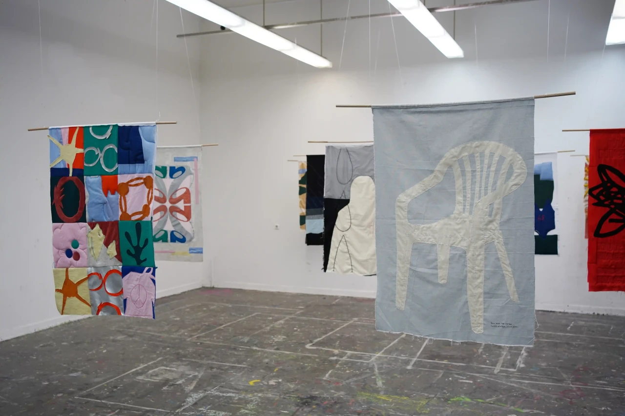 ►Kannst du dich und dein Projekt kurz vorstellen? Ich bin Phoolan Matzak, 29 Jahre alt und habe Ende 2023 meinen Bachelor in Illustration gemacht. Kurz bevor ich mit meinem Projekt gestartet bin, habe ich mich dafür entschieden, dass mein Thema eine freie künstlerische Arbeit behandelt und kein Bilderbuch, wie ursprünglich geplant. Die Entscheidung habe ich aus meinem Bauchgefühl heraus getroffen [und nicht bereut!]. Ich hatte Lust auf eine neue Herausforderung und habe mir Textil als Material für mein Bachelorprojekt ausgesucht. Auf der Suche nach einem inhaltlichen Thema kam ich zu meiner eigenen Lebensgeschichte. So ist eine autobiografische Arbeit zum Thema Erinnerungen entstanden. Sie besteht aus einer Installation aus dreizehn genähten Bildern, die ausgewählte Erinnerungen und Schlüsselmomente visualisieren. Dabei handelt es sich um schöne und schwere Erinnerungen, die Gleichzeitigkeit einer unbeschwerten Kindheit und traumatischen Erlebnissen, Spiel und Schmerz. Der künstlerische Prozess selbst diente der Reflexion und Verarbeitung meiner Vergangenheit und kann somit als ‹Art-based Research› bezeichnet werden. ►Was fühlst du, wenn du an dein Projekt denkst? Auf der einen Seite fühle ich Verletzlichkeit, da in dieser Arbeit so viel von mir selbst steckt. Es ist das für mich bisher bedeutendste Projekt, das ich gemacht habe. Und auf der anderen Seite bin ich stolz darauf, dass ich mich getraut habe, neue Wege zu gehen und auf mein Herz zu hören. Ich denke, ich bin durch diese Arbeit ein gutes Stück gewachsen. ►Mit welchen Techniken hast du gearbeitet? Ich habe hauptsächlich mit der Nähmaschine genäht. Partiell habe ich die Bilder mit Wattevlies unterfüttert oder mit Füllwatte ausgestopft. Ein bisschen gestickt habe ich auch. ►Was gefällt dir am meisten an deinem Projekt? Mir gefällt, dass ich meine eigene Formsprache beibehalten, aber auch weiterentwickelt und in ein neues Material übersetzt habe. Vor allem aber habe ich das Gefühl, etwas mit Bedeutung und Ehrlichkeit geschaffen zu haben und damit Menschen berühren zu können. ►Kannst du von deinem Gestaltungsprozess erzählen? Ich gehe an meine Projekte meist intuitiv heran. Also habe ich erstmal Stoffe gesammelt und in meinem Kopf nach Bildern gesucht, aber auch Fotos oder Gegenstände aus meiner Vergangenheit für die Motivfindung genutzt. Dann folgten kleine Nähproben und Skizzen. Bei manchen Bildern habe ich auch direkt angefangen und es hat mir gefallen. Das flächige Arbeiten in Schichten war mir bekannt von Papiercollagen und meiner Art zu Malen. So fügten sich nach und nach die dreizehn Bilder zusammen. Meine erste Idee war, sie zu einem großformatigen textilen Buch oder Leporello zusammenzunähen. Allerdings wurde mir im Prozess klar, dass diese Formen eine chronologische Abfolge vorgeben. Meine Erinnerungen treten jedoch oft plötzlich und unsortiert auf. Somit entschied ich mich für eine freie Hängung im Raum, die ihre Gleichzeitigkeit darstellt. Die Erinnerungen stehen für sich und doch im Verhältnis zueinander. ►Was inspiriert dich? Mich inspirieren andere Künstler*innen, Farben und Formen. Aber auch alltägliche Dinge und Gespräche oder Musik. ►Hast du ein Skizzenbuch? Wenn ja, wie oft nutzt du es? Ich besitze ein Skizzenbuch, aber ich war noch nie die Person, die es regelmäßig und gezielt genutzt hat. Manchmal landen spontane Einfälle in schriftlicher Form oder gefundene Schnipsel darin.