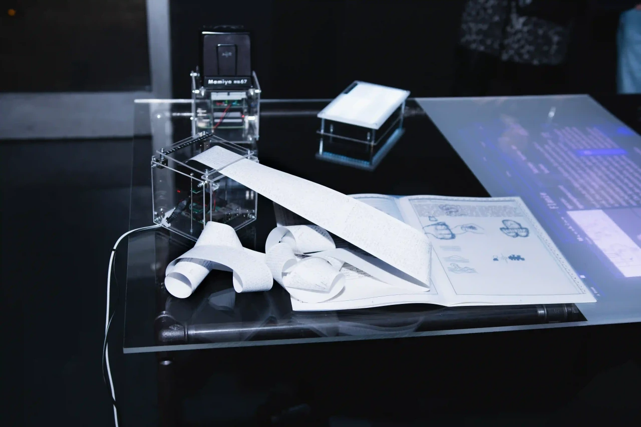 ►Um was geht es in deinem Projekt? Mit welchem Thema hast du dich befasst? Die Arbeit zielt darauf ab, einen Verstehensprozess durch gestalterische Arbeit zu bewegen, sicht- und nachvollziehbar zu machen. In der Beschäftigung mit verschiedenen Texten und Begriffen sind Schichten, also Zusammenhänge dieser Begriffe, ähnlich einer archäologischen Untersuchung, freigelegt worden. Daraus werden rhapsodische Maschinen konstruiert, die helfen, die Schichten und den eigenen Standpunkt in diesen zu entfalten. Das Wort rhapsodisch setzt sich aus den altgriechischen Wörtern rhápto [zusammennähen] und odē [Gesang] zusammen. Fragmente werden verbunden und bekommen so einen Körper – sie werden rhapsodisch. Dabei leiten die folgenden zwei programmatischen und poetischen Fragen den Prozess der Suche an: Kann man sich selbst ausgraben? Wie schaffen wir es in Zukunft, die erträumten Dinge auszugraben? So hangelt sich die Arbeit an einer archäologischen Methode entlang, um in einem Entwurfsprozess Denkbilder zu schaffen, die als Teil einer kritisch-künstlerischen Praxis zur Erkenntnisgewinnung angeschlossen werden können. ►Was ist alles Teil deiner Arbeit? Sieben Maschinen und ein kleines Buch mit dem theoretischen Teil der Thesis. Die Maschinen sind multimedial: von Soundpiece bis Webseite. ►Was hat dich inspiriert? Unter anderem, aber ganz besonders: Walter Benjamins Texte. ►Kannst du von deinem Arbeitsprozess erzählen? Im Prozess des Lesens und Verstehens von Texten, Themen und Begriffen sind Maschinen entstanden. Das heißt, ich habe mich den Texten und Begriffen angeschlossen und ihre Geflechte und Windungen mithilfe von Methoden gestalterischer Praxis nachvollzogen. ►Was hast du durch dein Projekt gelernt? Zu lernen, einen abduktiven Prozess mit eigenen Strukturen und Fragestellungen zu führen – einen Prozess der künstlerischen Forschung. ►Was sollen Betrachter*innen aus deinem Projekt mitnehmen? Welche Wirkung möchtest du erzielen? Betrachter*innen sollen die Möglichkeit bekommen, das Netzwerk der Maschinen zu erfahren und damit nachvollziehen zu können. Sie sollen selbst in der Lage sein, mit den Maschinen in ein Verhältnis zu treten, das ihnen ermöglicht neue Artefakte zu bergen.