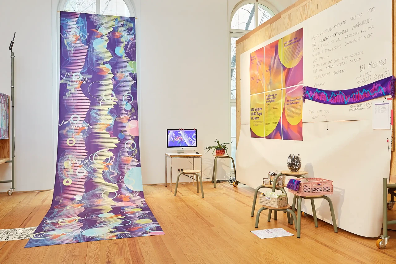 Erdbeerwoche, Besuch von Tante Rosa, Los Wochos, that time of the month, die Maler im Keller, seine Tage haben. Die Menstruation ist Alltag und trotzdem Tabuthema. So sehr sogar, dass es unzählige Umschreibungen gibt, um bloß nicht Worte wie Periode, Blutung oder Menstruation zu benutzen. Und wenn wir mal ehrlich sind, klingen diese auch nicht sonderlich attraktiv. Der Menstruationszyklus begleitet etwa die Hälfte der Menschheit über die Hälfte ihres Lebens. Ungefähr 500 Mal, bis zu 30 Liter und insgesamt etwa 8 Jahre ihres Lebens, blutet eine FLINTA* Person. Und trotzdem ist die Welt und das öffentliche Leben nicht darauf ausgelegt. Wo es in Deutschland ‹nur› an zugänglichen und sauberen öffentlichen Toiletten fehlt, gibt es in anderen Nationen ganz andere Probleme: Menstruierende Personen die keinen Zugang zu Menstruationsprodukten haben oder es ihnen während ihrer Periode verboten ist, Gebetsstätten aufzusuchen, in die Schule zu gehen, oder die Küche zu betreten. Sie gelten in dieser Zeit als unrein. FLINTA* Personen werden so aktiv vom öffentlichen Leben ausgegrenzt und ihre Bedürfnisse werden nicht wahrgenommen oder schlichtweg ignoriert. Dass die Menstruation und der Zyklus immer noch Tabuthemen sind, verhindert, dass sich solche Missstände verbessern. Solange nicht offen über das Thema gesprochen wird, wird es niemals die Aufmerksamkeit bekommen, die es braucht und verdient. Mit ‹there will be blood› wollen wir dem Thema nicht nur mehr Raum geben, sondern auch die Komplexität und die Vielfalt des Zyklus veranschaulichen. Mit der Hilfe unseres Programms kann der individuelle Zyklus auf eine abstrakte, künstlerische Weise dargestellt werden. Wir wollen jede:n Einzelne:n anregen, offen über den Zyklus zu sprechen und sich selbst und den eigenen Körper besser kennenzulernen. Mit unserer Arbeit wollen wir dem Zyklus eine neue Stimme geben: stark, bunt und selbstbewusst! ►FLINTA* steht für cis-Frauen, Lesben, Intersexuelle, Non-Binär, Transsexuelle, A-Sexuelle und * alles dazwischen. Mit cis-Frauen sind cis-hetero-Frauen gemeint, also Frauen deren biologisches Geschlecht mit ihrer Geschlechtsidentität übereinstimmt.
